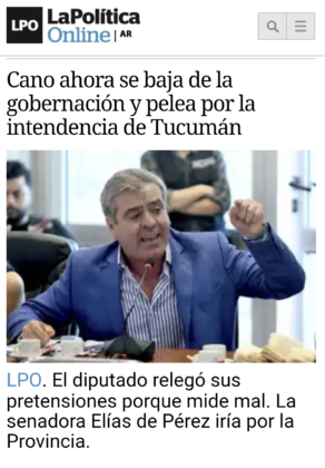 Para LPO, la mala gestión como director del Plan Belgrano, le restó imagen en la provincia. A su vez, en el portal de noticias consignaron que si bien la performance de Cano en 2015 le había potenciado su proyección hacia los próximos comicios provinciales, las derrotas sufridas en las legislativas nacionales de Agosto y Octubre, habrían erosionado su legitimidad para volver a encabezar una fórmula gubernamental. Por eso para La Política Online, sería la Senadora Nacional Silvia Elías de Pérez la posible candidata para enfrentar al candidato del oficialismo en 2019, dando por descontado que el Gobernador Juan Manzur aspirará a repetir mandato.