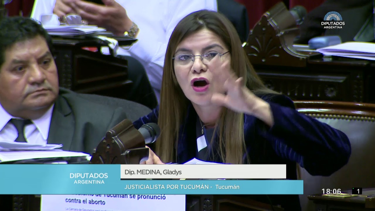 La Diputada Nacional Gladys Medina que conforma el Bloque Justicialista por Tucumán, fue la primera parlamentaria representante de Tucumán que manifestó su postura en la antesala de la votación del proyecto de ley que promueve el establecimiento de un marco legal para la Interrupción Voluntaria del Embarazo.